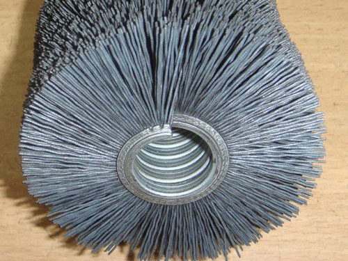 磨料絲彈簧刷輥就是把刷絲嵌壓在鍍鋅鐵條或不銹鋼條中,通過機器纏繞成彈簧的形狀,而形成一種新的品種毛刷輥。這種技術是引進國外的一種新的毛刷輥的做法。